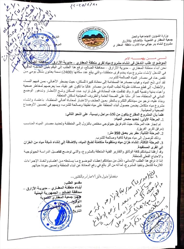 في عمق جبال الأزارق بمحافظة الضالع، تتصاعد صرخات العطش من قرى منطقة المعفاري، حيث يعيش أكثر من ثلاثة آلاف نسمة مأساة يومية مع الجفاف، بعد أن نضبت مياه الأمطار وجفت الآبار السطحية.