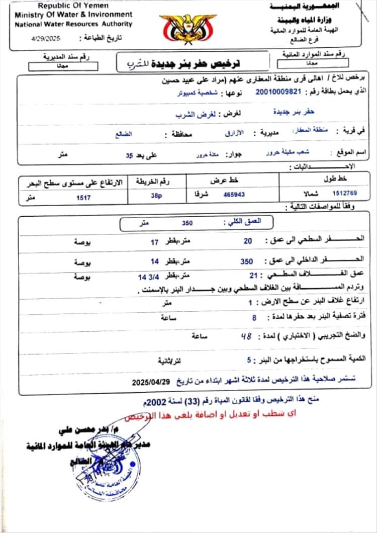 من هذا الواقع القاسي، انطلقت حملة شركاء سقي الخير، في مبادرة إنسانية تهدف إلى حفر بئر مياه بعمق 350 مترًا لتوفير مصدر دائم لمياه الشرب وإنهاء معاناة ممتدة منذ سنوات.